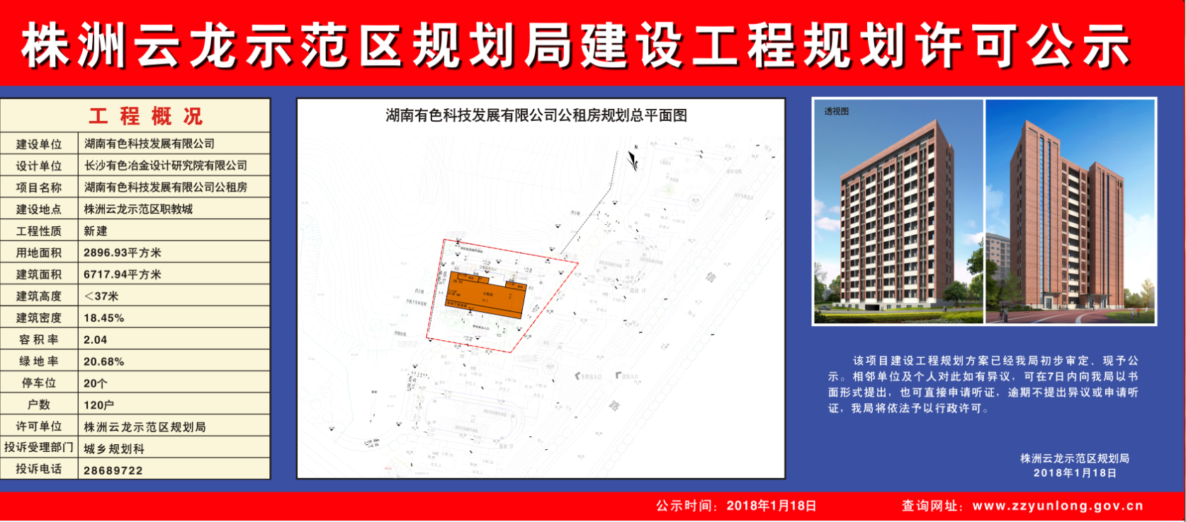 湖南有色科技发展有限公司公租房建设工程规划许可公示