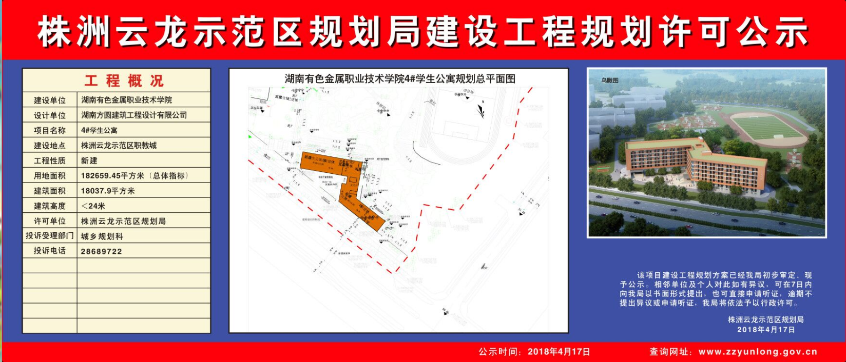 湖南有色金属职业技术学院4#学生公寓建设工程规划许可公示