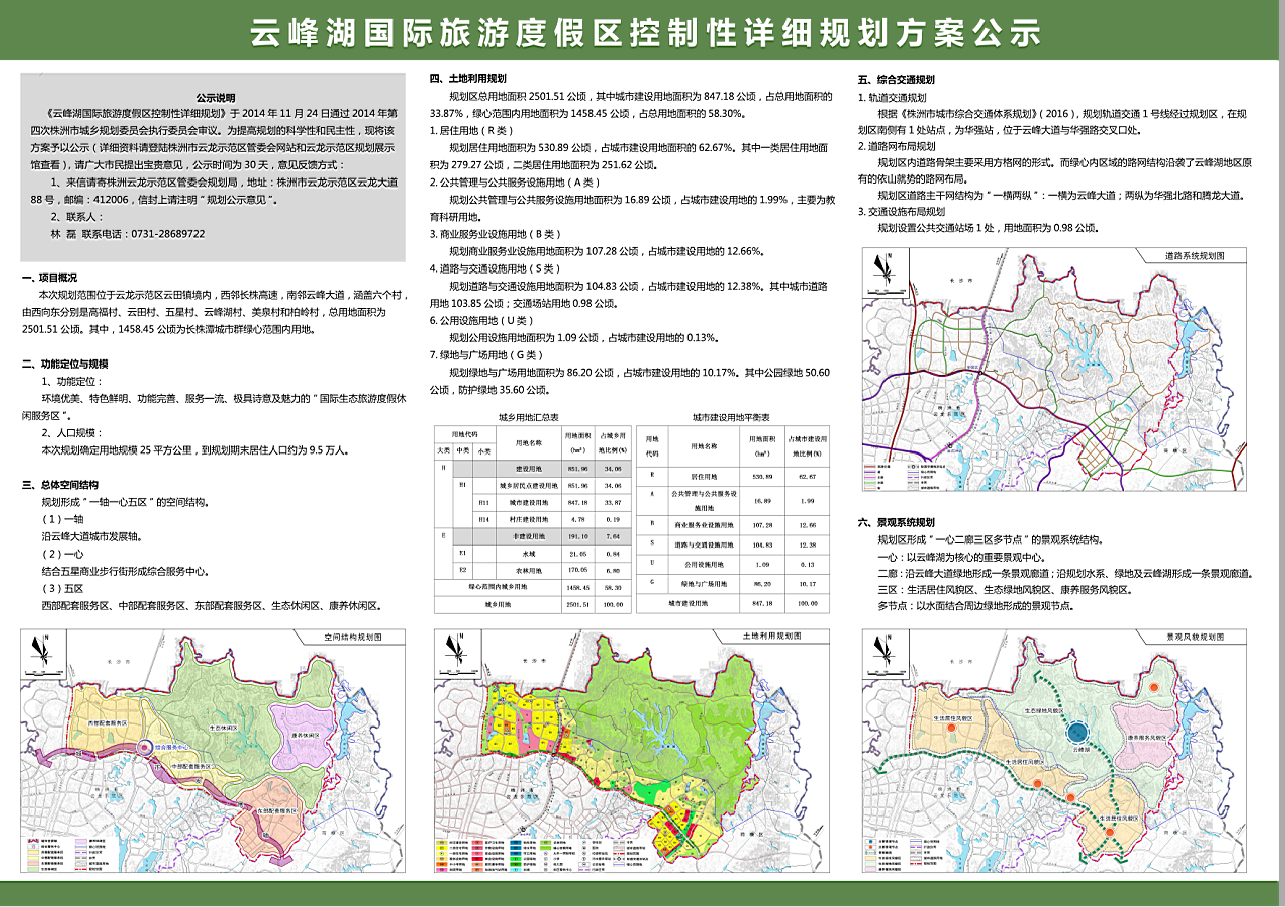 《云峰湖国际旅游度假区控制性详细规划》于2014年11月24日通过2014年第四次株洲市城乡规划委员会执行委员会审议。为提高规划的科学性和民主性,现将该方案予以公示(详细资料请登陆株洲市云龙示范区管委会网站和云龙示范区规划展示馆查看),请广大市民提出宝贵意见,公示时间为30天,意见反馈方式: