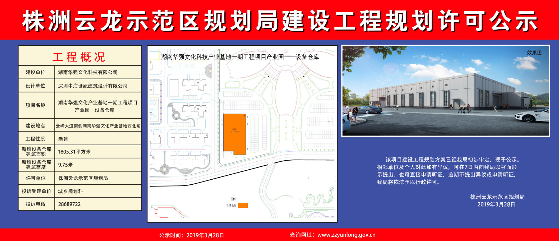 湖南华强文化科技产业基地一期工程项目设备仓库建设工程规划许可公示