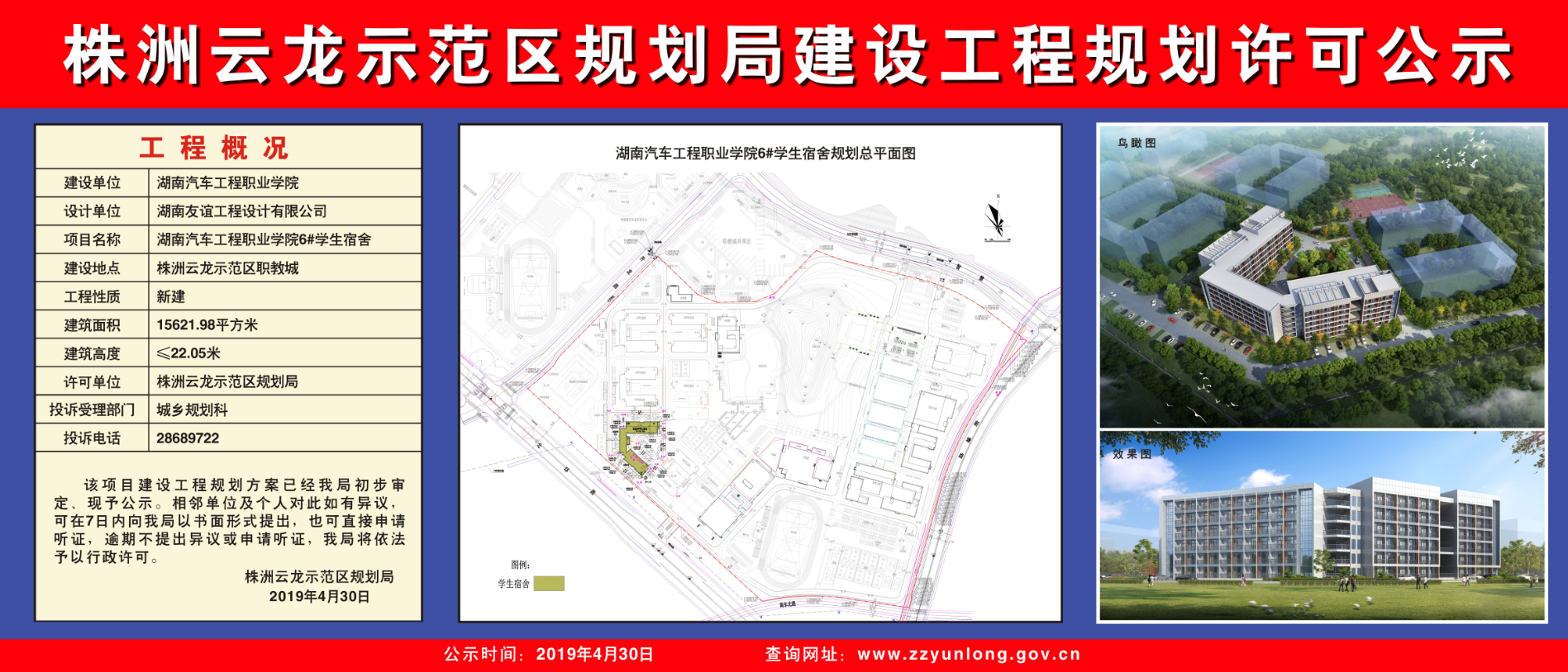 湖南汽车工程职业学校6#学生宿舍项目建设工程规划许可公示
