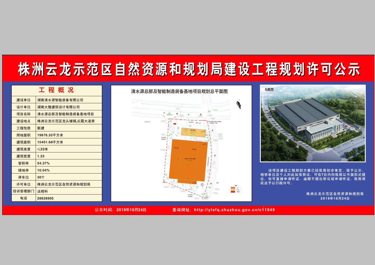 清水源总部及智能制造装备基地项目建设工程规划许可公示