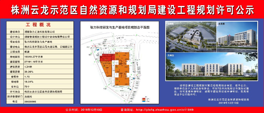 湖南张力汇龙科技有限公司张力科技研发与生产基地项目规划许可公示
