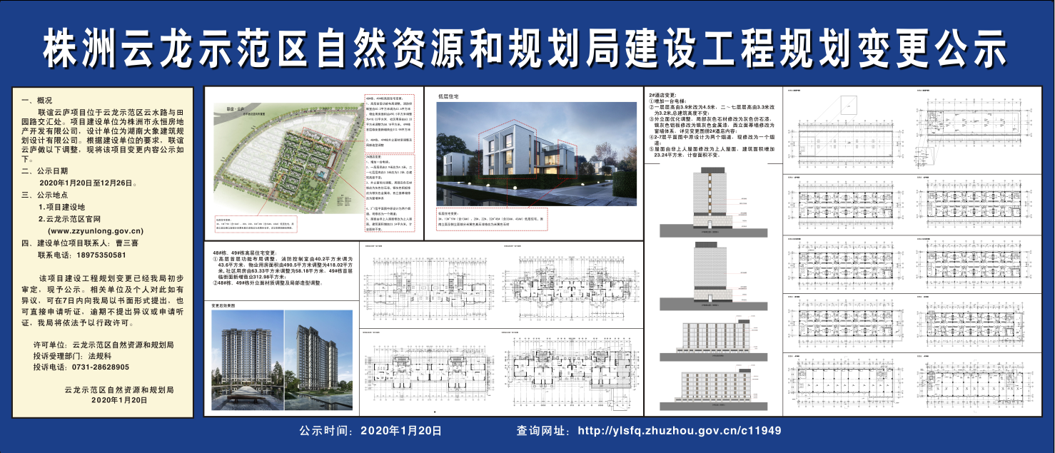 株洲市永恒房地产开发有限公司联谊云庐项目建设工程规划变更公示