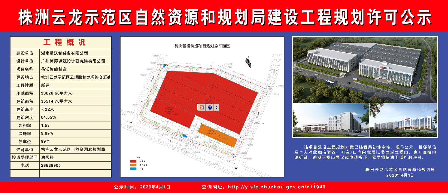 湖南易沃智能装备有限公司易沃智能制造项目建设工程规划许可公示