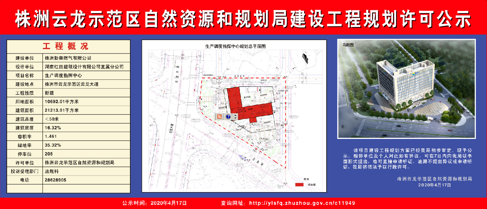 株洲新奥燃气有限公司生产调度指挥中心项目建设工程规划许可公示