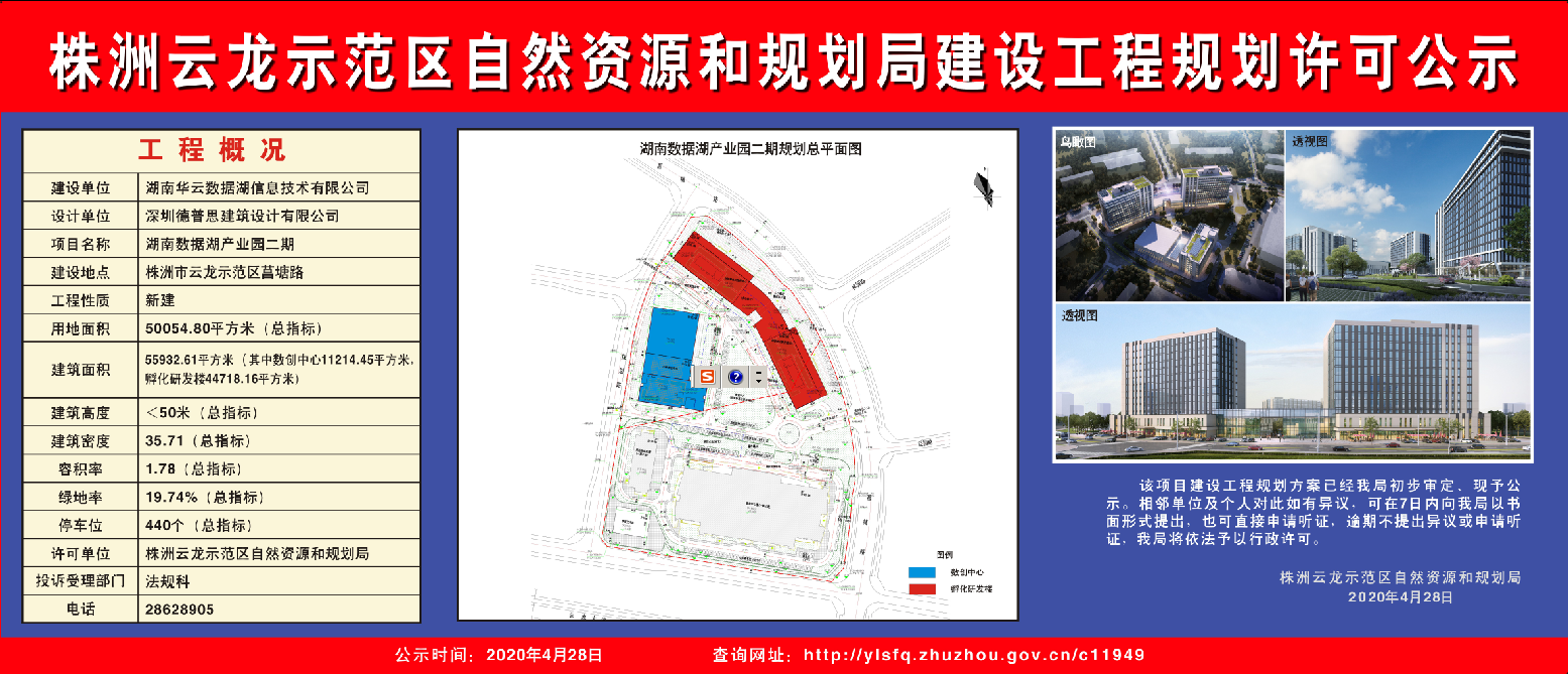 湖南华云数据湖信息技术有限公司湖南数据湖产业园项目建设工程规划许可公示