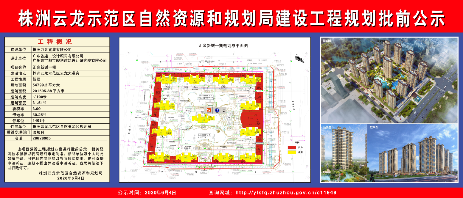株洲万金置业有限公司汇金新城一期项目建设工程规划批前公示
