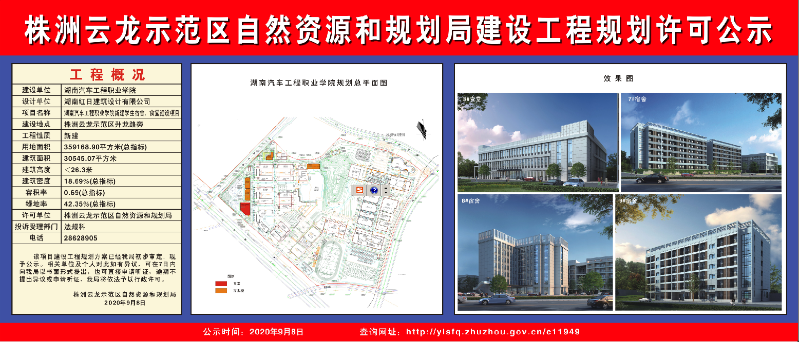湖南汽车工程职业学院新建学生宿舍、食堂建设项目建设工程规划许可公示