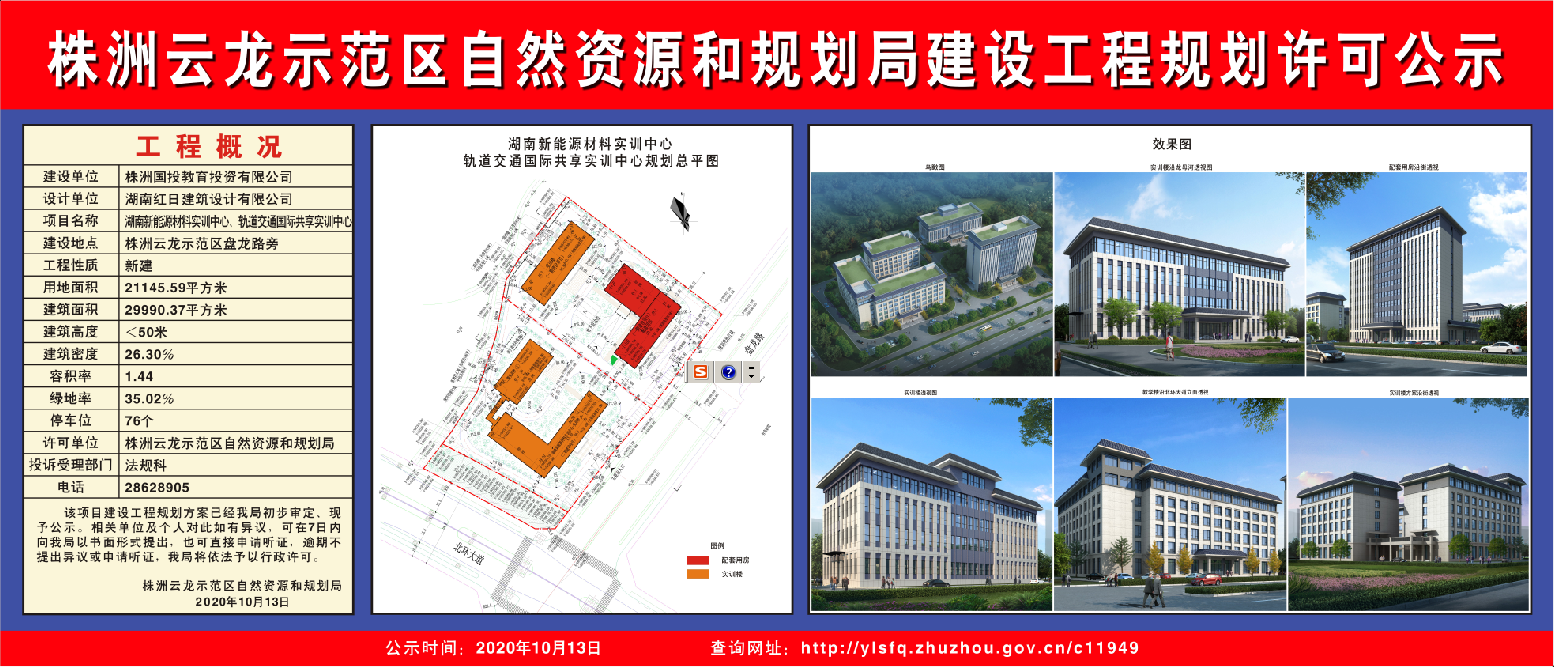 株洲国投教育投资有限公司湖南新能源材料实训中心、轨道交通国际共享实训中心项目建设工程规划许可公示