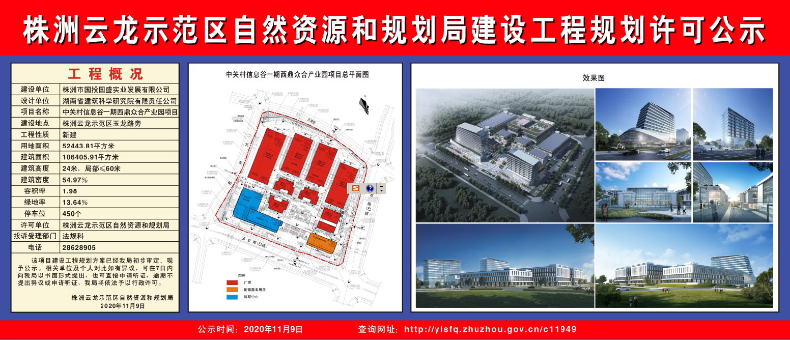 株洲市国投国盛实业发展有限公司中关村信息谷一期西鼎众合产业园项目建设工程规划许可公示