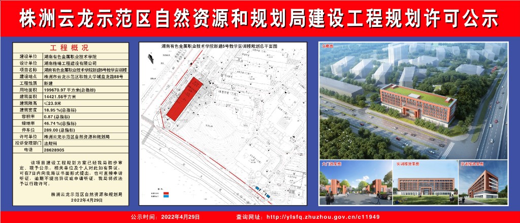 湖南有色金属职业技术学院湖南有色金属职业技术学院新建5号教学实训楼建设工程规划许可公示