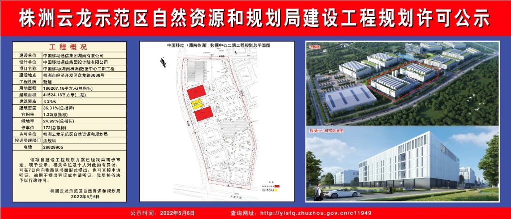 中国移动通信集团湖南有限公司中国移动(湖南株洲)数据中心二期工程建设工程规划许可公示