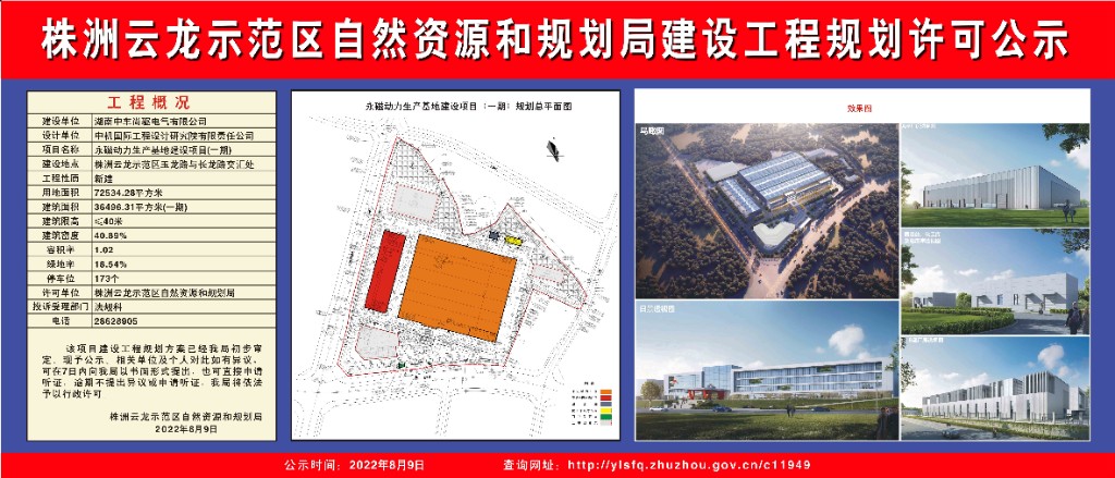 湖南中车尚驱电气有限公司永磁动力生产基地建设项目(一期)建设工程规划许可公示