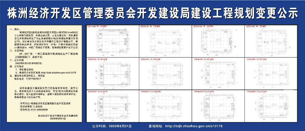 株洲经开区产业园发展有限公司(原株洲经开置业有限公司)株洲经开区(省级)生物科技园示范园2.1期项目(1#-6#栋)建设工程规划变更公示