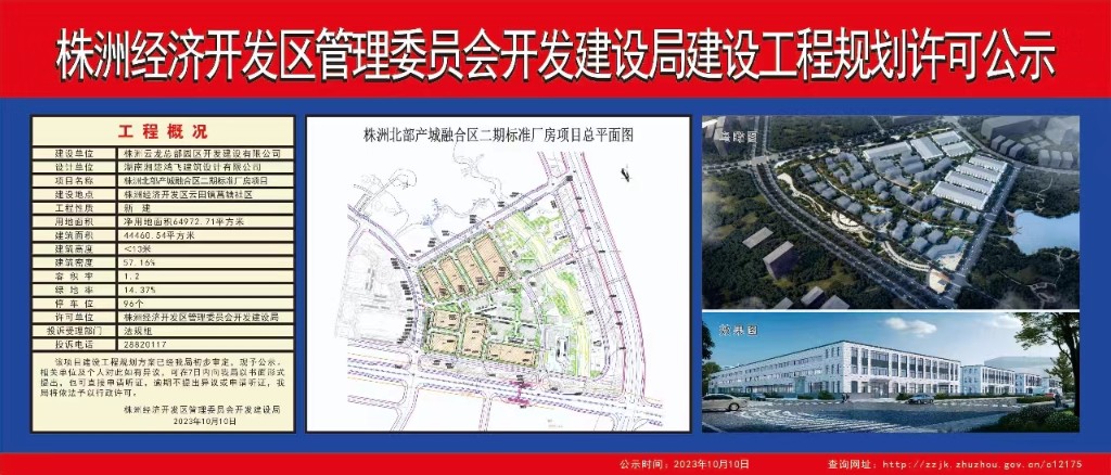 株洲云龙总部园区开发建设有限公司株洲北部产城融合区二期标准厂房项目建设工程规划许可公示