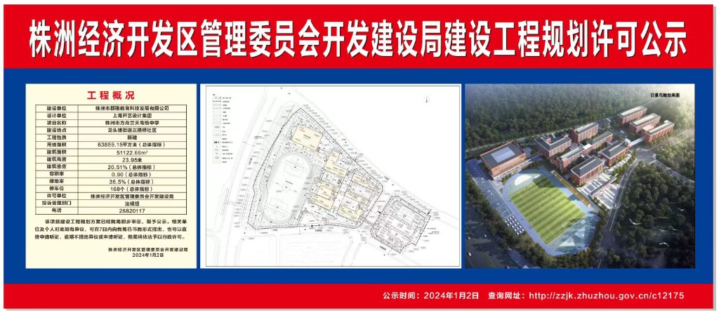 株洲市方舟兰天高级中学项目建设工程规划许可公示