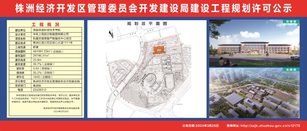 轨道交通装备产教融合中心项目建设工程规划许可公示