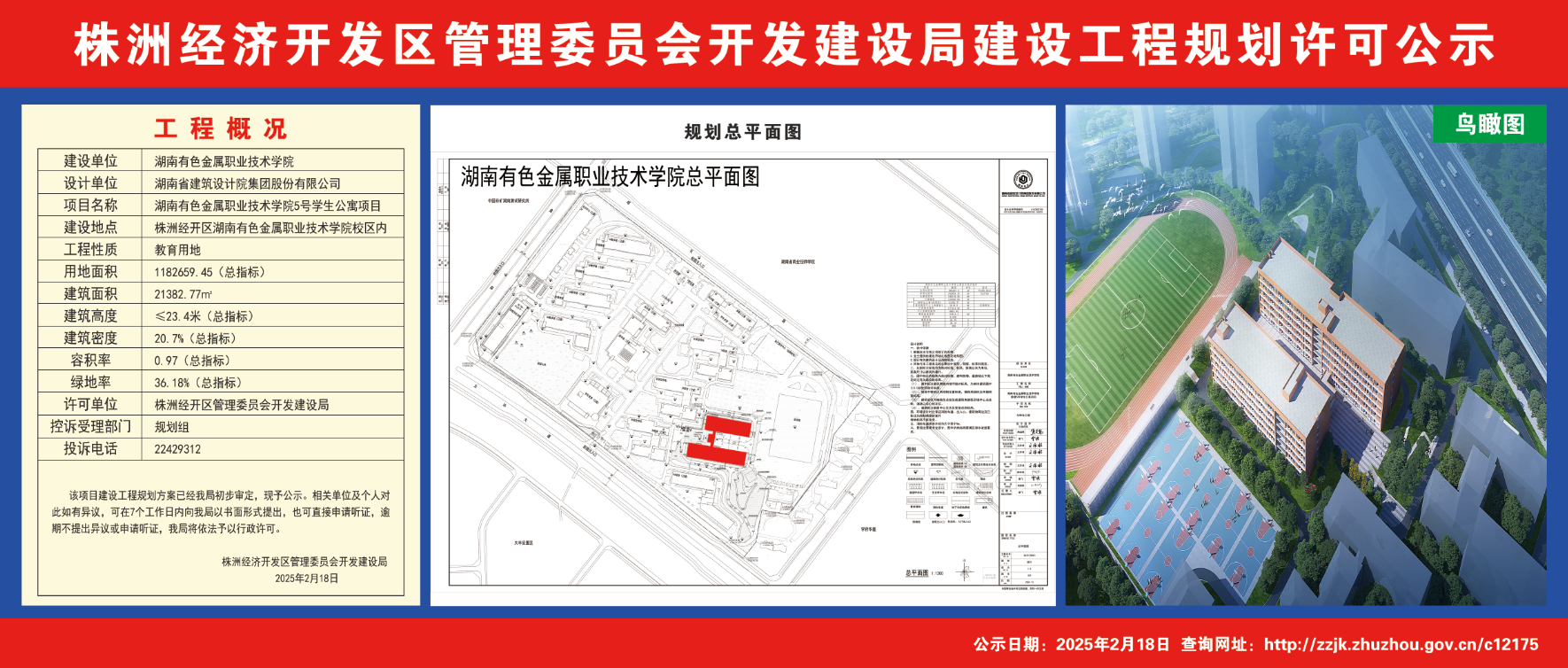 湖南有色金属职业技术学院5号学生公寓项目建设工程规划许可公示