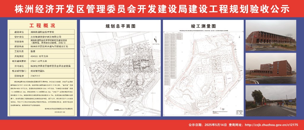 湖南铁道职业技术学院新校区建设项目(图书馆、体育综合训练楼、次校门)规划验收公示