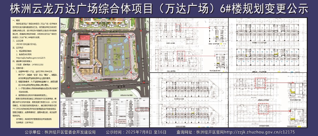 株洲云龙万达广场综合体项目(万达广场)6#楼规划变更公示
