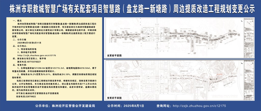 株洲市职教城智慧广场有关配套项目智慧路〔盘龙路一新塘路〕周边提质改造工程规划变更公示