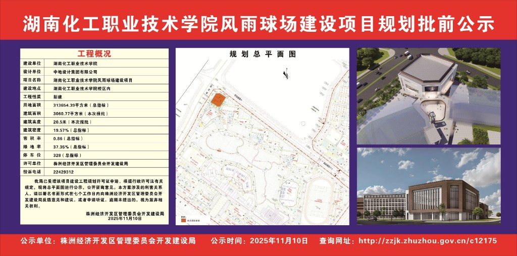 湖南化工职业技术学院风雨球场建设项目规划批前公示